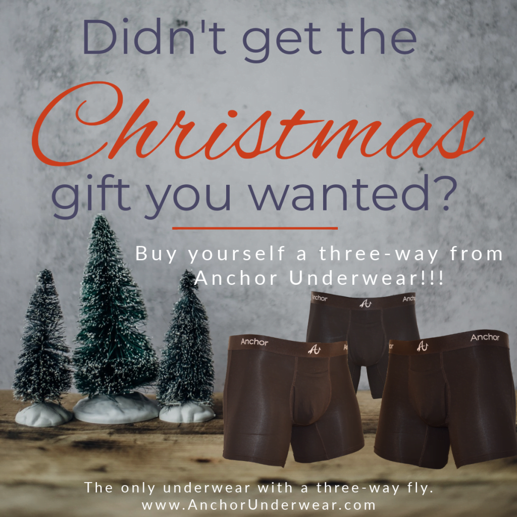 Didn’t get the Christmas gift you were looking for this year? Buy yourself a three-way from Anchor Underwear. The only underwear with a three-way fly.